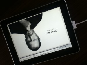 אזכרה של גאון, על המכשיר שהמציא. ג'ובס על האייפוד 2011. תצלום: f_shields באמצעות פליקר. רישיון CC