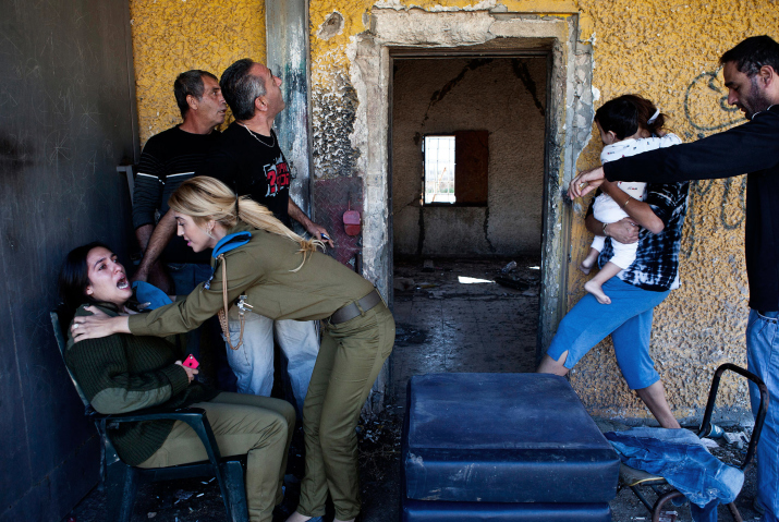 אמא מבכה את בתה, חנן תאפש, עזה. תצלום: מרקו לונגרי, איי.אף.פי, גטי אימג'סקרובים מבכים את איציק אמסלם, קרית מלאכי. צילום: אוריאל סיני, גטי אימג'סמנהיג החמאס איסמעיל הניה מבקר משפחה שבנה נהרג. בשער האתרים והעיתונות הפלסטינית. מתוך: http://paltimes.net/details/news/נתניהו מבקר של סרן זיו שילון, שנפצע לפני כחודש. מתוך עמוד הפייסבוק של ראש הממשלהכוחות הצלה מטפלים בפצוע מירי חיל האוויר הישראלי. בית להייה. צילום: מוחמד עאבד, איי.אף.פי, גטי אימג'סאזרחים ישראלים תחת הפגזת טילים פלסטינית. מקור: http://www.allworldwars.comטיל. צילום: צפריר אביוף, איי.פיטיל. צילום: סאהיב סאלם, רויטרס